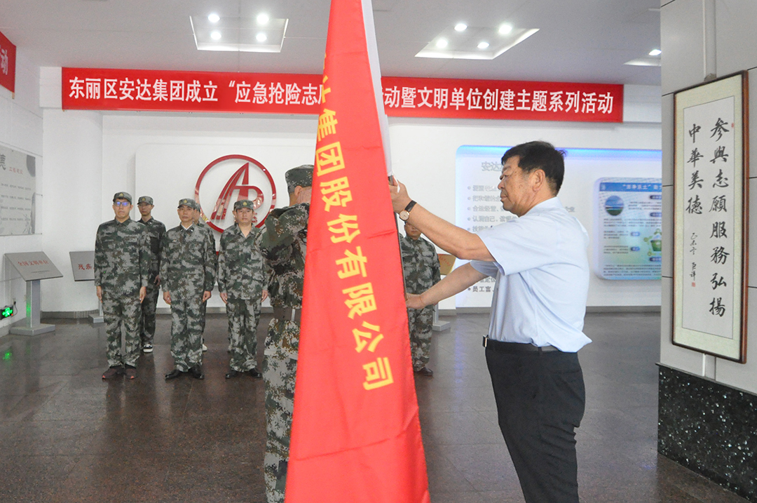 为进一步提高安达集团应急救援响应处置能力,及时应对集团及社会出现的重大突发抢险救援事件,集团党委决定成立一支能力强反应快的应急抢险志愿服务队。7月11日上午,在安达集团办公室和后勤保障部的统一安排下,安达集团应急抢险志愿队正式成立,并在一楼大厅举行授旗仪式。
